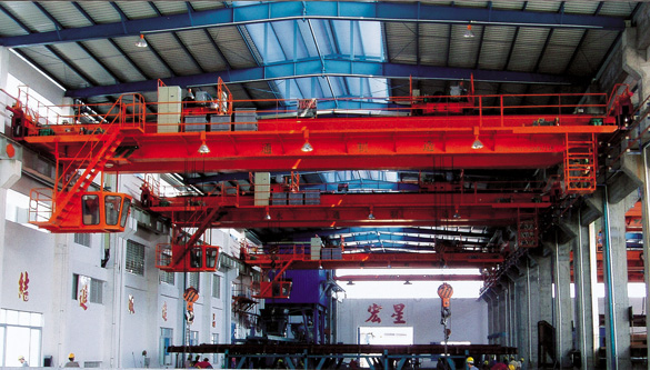 橋架在高架軌道上運(yùn)行的一種橋架型起重機(jī),又稱天車。橋式起重機(jī)的橋架沿鋪設(shè)在兩側(cè)高架上的軌道縱向運(yùn)行,起重小車沿鋪設(shè)在橋架上的軌道橫向運(yùn)行,構(gòu)成一矩形的工作范圍,就可以充分利用橋架下面的空間吊運(yùn)物料,不受地面設(shè)備的阻礙。這種起重機(jī)廣泛用在室內(nèi)外倉庫、廠房、碼頭和露天貯料場等處。